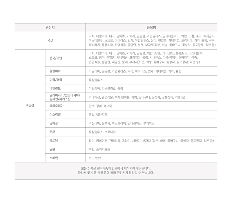 ※ 사진은 [상품가격] 기준으로 제작되었습니다. 중품/상품/특품의 차이점은 꽃의 크기와 풍성도 차이입니다.